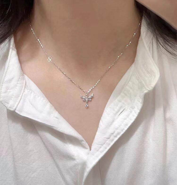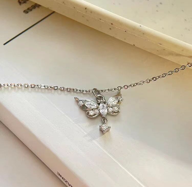 優雅な蝶の翼をモチーフにした、S999純銀製の流れるようなタッセル付きネックレス。