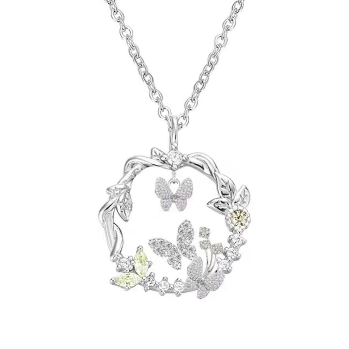 花冠と蝶をモチーフにした繊細で上品なネックレス。