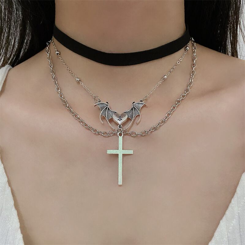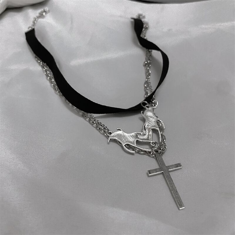 - 十字架とハートモチーフを組み合わせた、3連デザインのチョーカーネックレスです。